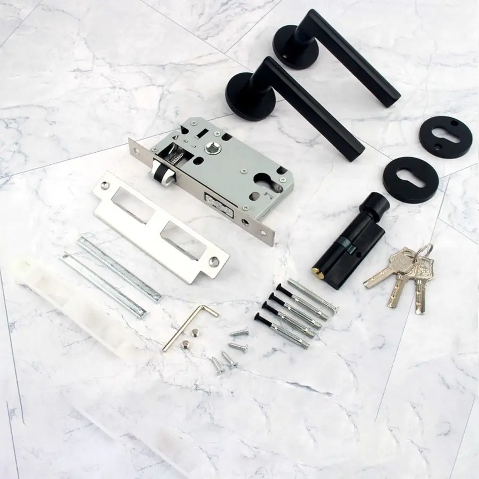 European Silent Bearing Door Handle Lock Set with Metal Keys Black Anti-theft Security for Bedroom Doors