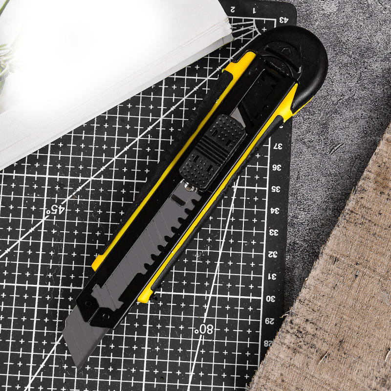 Utility Knife 18mm Blade Rubber Coated Three Shot ABS Handle Black Color 160mm Length For Paper Cutting And Wallpaper Removal