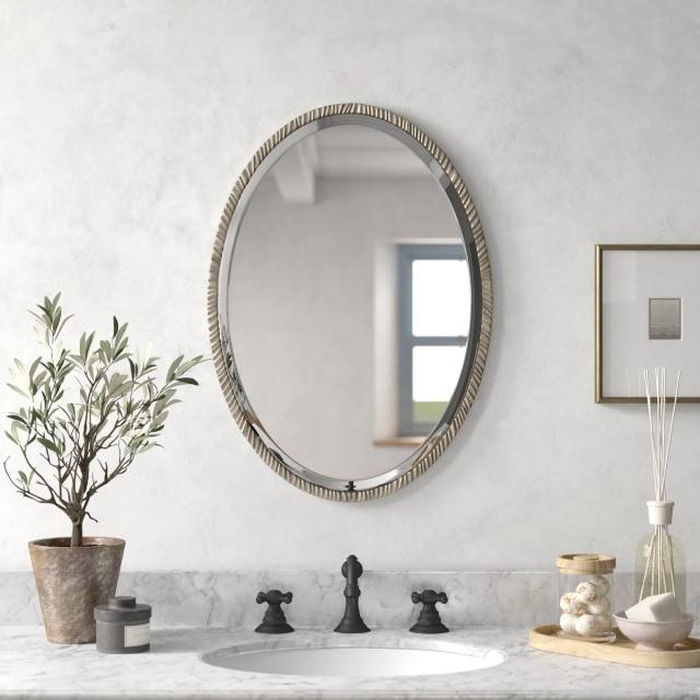 Uttermost Annadel Oval Wall Mirror Silver Decorative Home DecorAccent Mirror Elegant Oval Shaped Wall Hanging Mirror Living Room