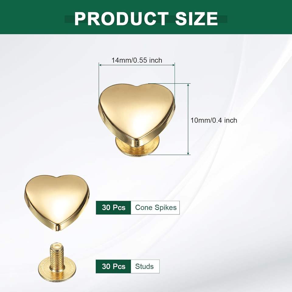 Uxcell Pcs Metal Stud Rivets Mm Heart Shape Decoration Stud Rivet Screw Back Studs For Leather Bags Belt Clothes Shoes Purse Sup