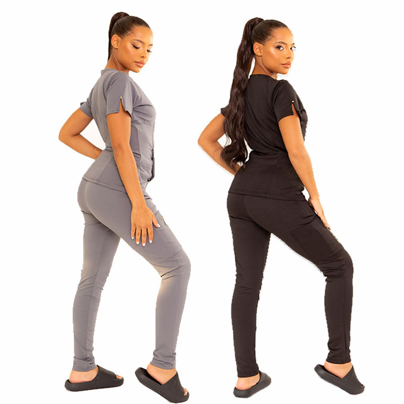 V-Neck Elastic Yoga Waistband Scrub Pant for Women Maternity Scrub Set Pockets Medical Spa Elastic Jogger Uniforms Sets