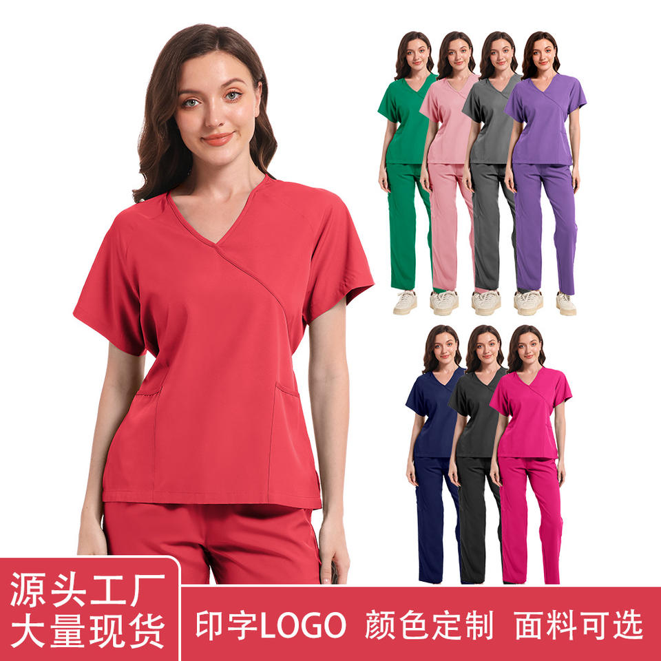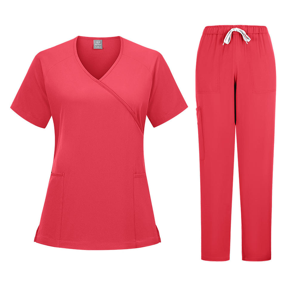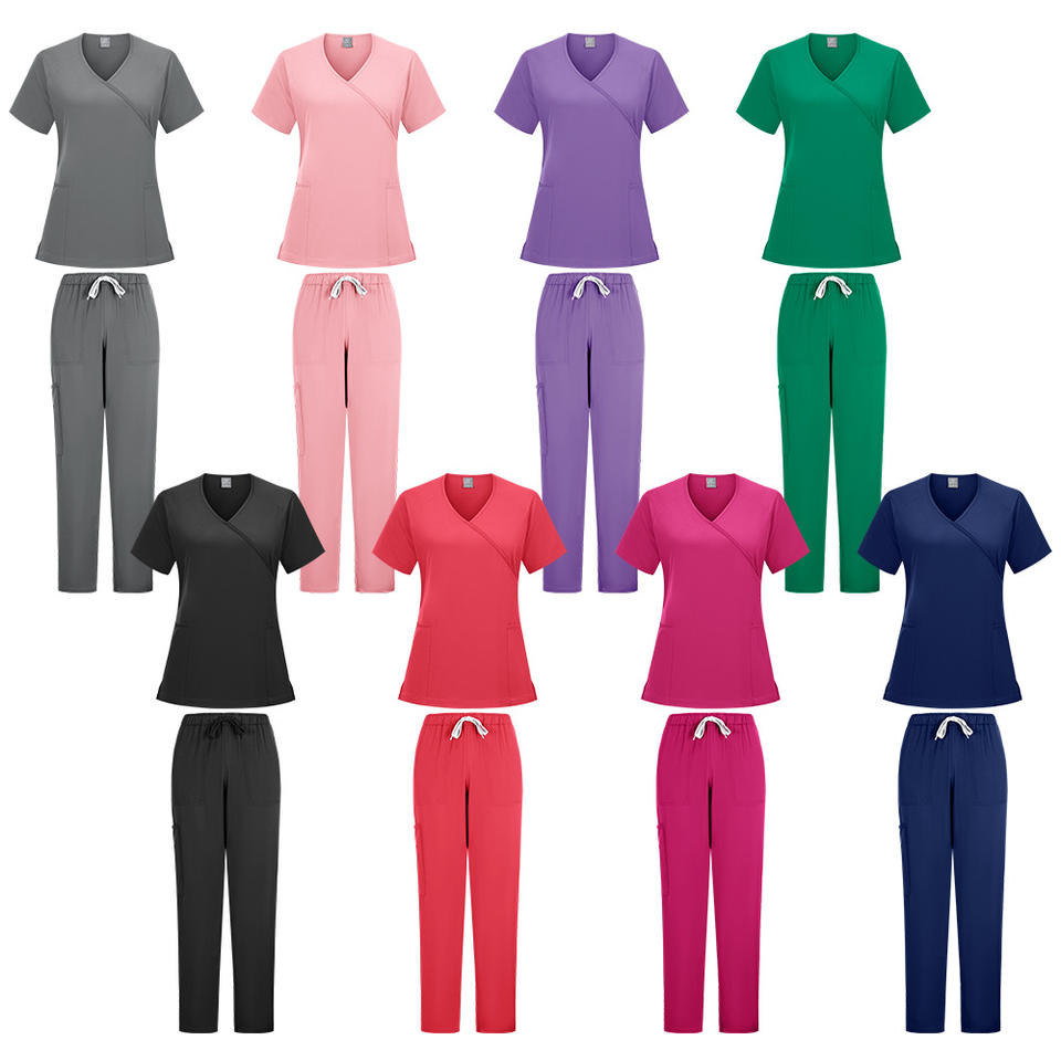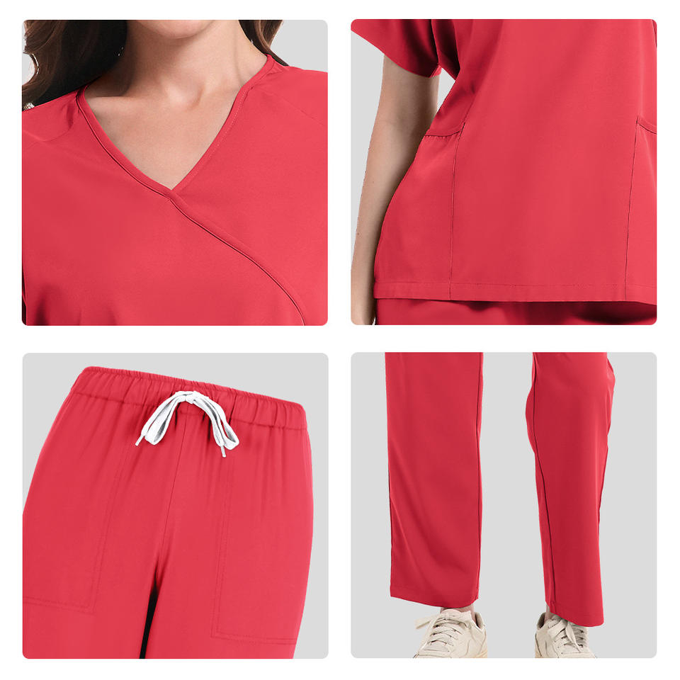 V-Neck Scrub Set For Women Moisture Wicking Breathable Hospital Uniforms Split Design All Season Wear