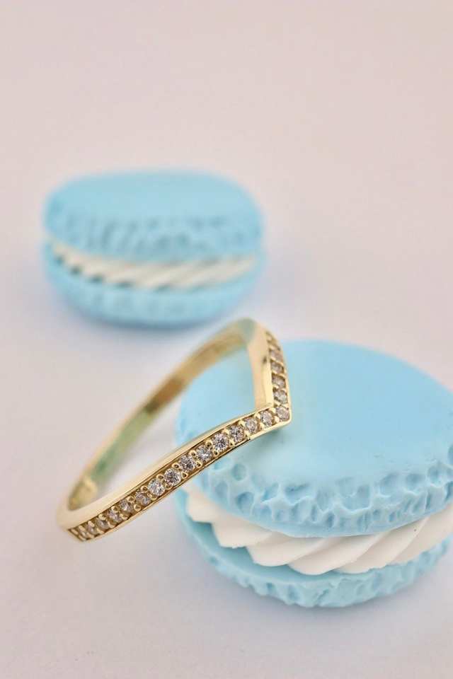 V Shaped 925 Sterling Silver Gold Ring 14K Gold Stone Ring Great Choice for Elegant Dresses With Glittering Stones Stackable