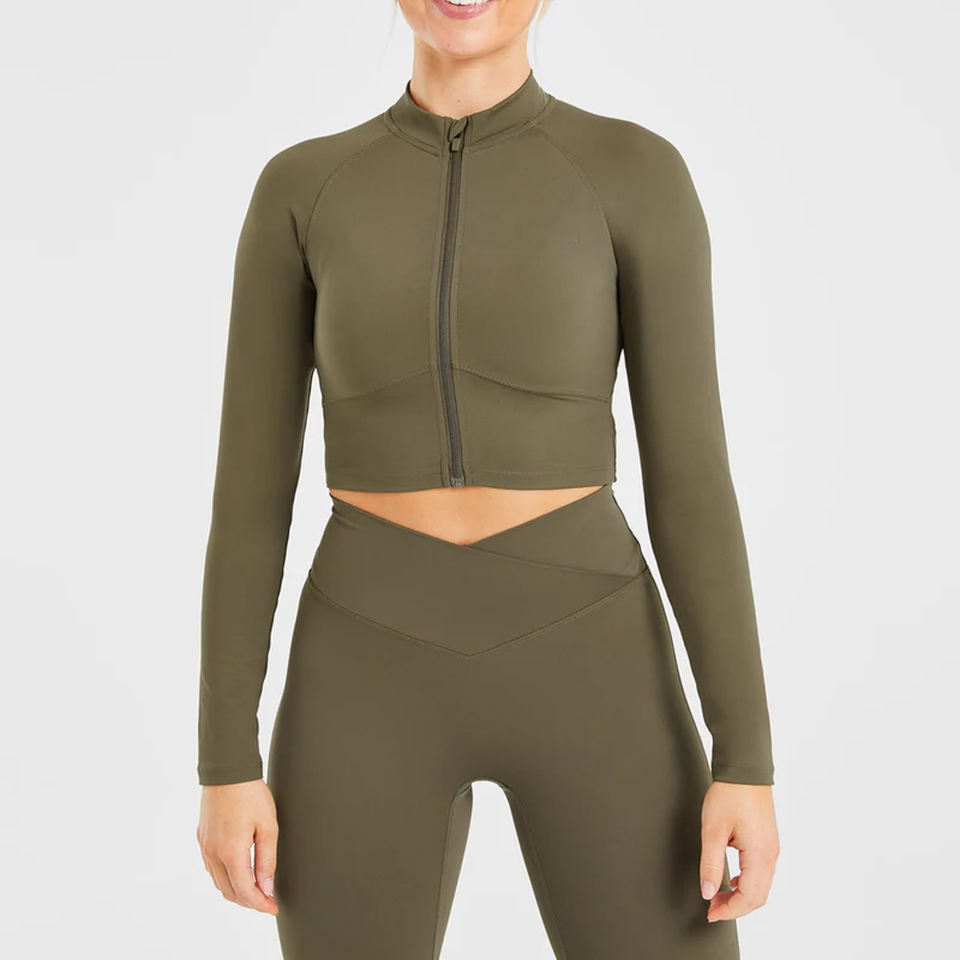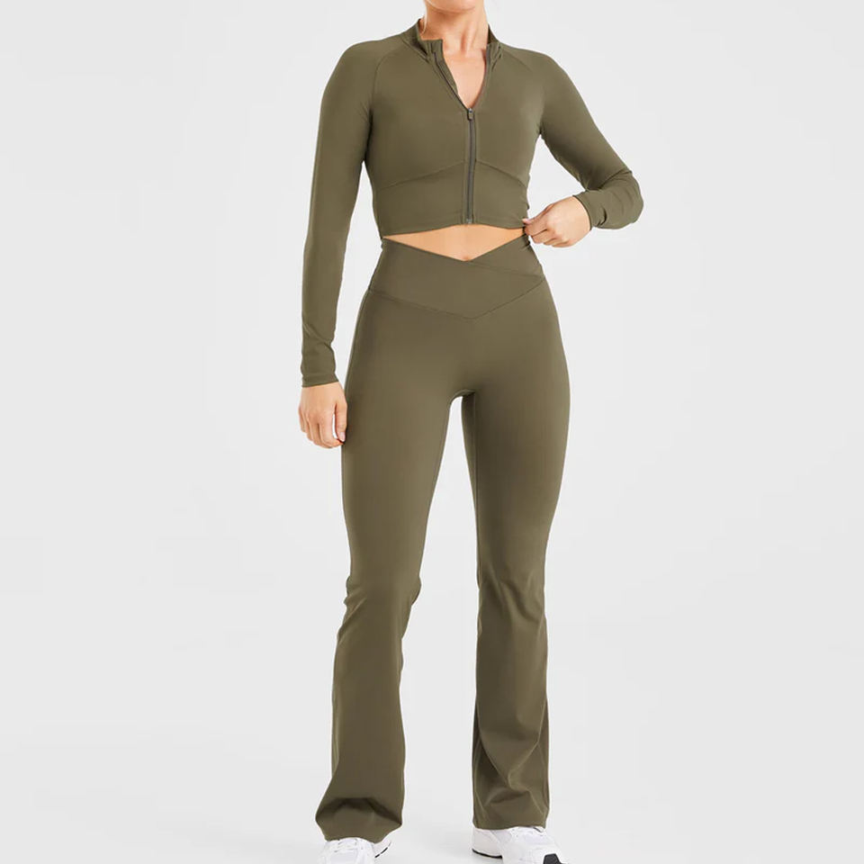 V-Shaped Women's Flared Leggings Tights & Cropped Tops Jackets Factory Made Best Selling Women Yoga Set With Zipper Closure