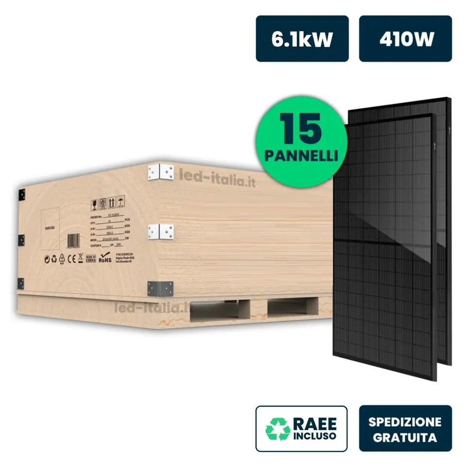 V-TAC 6.1kW Solar Panel Set 15 Pieces 410W PERC Monocrystalline Silicon 36V IP67 IP68 TUV for Certified