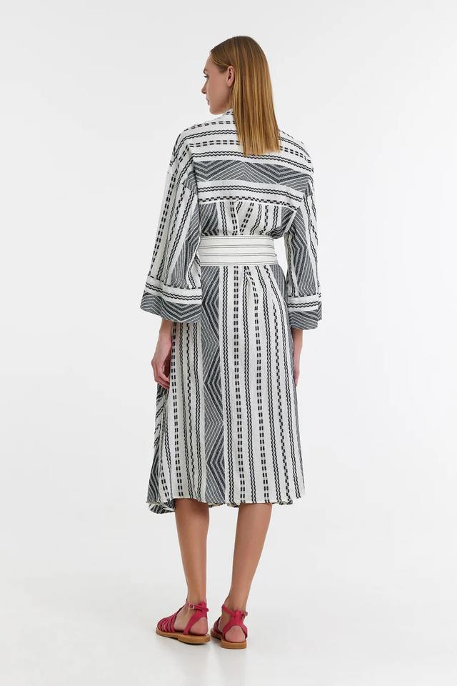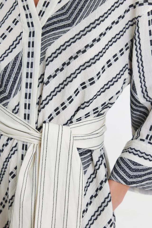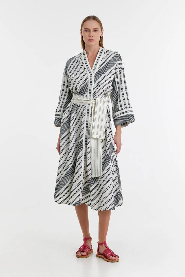 V-Weaving One-piece Women's Relaxed Fit Summer Autumn V Neck Dress with Belt Trendy Design Soft Fabric for Hot Weather