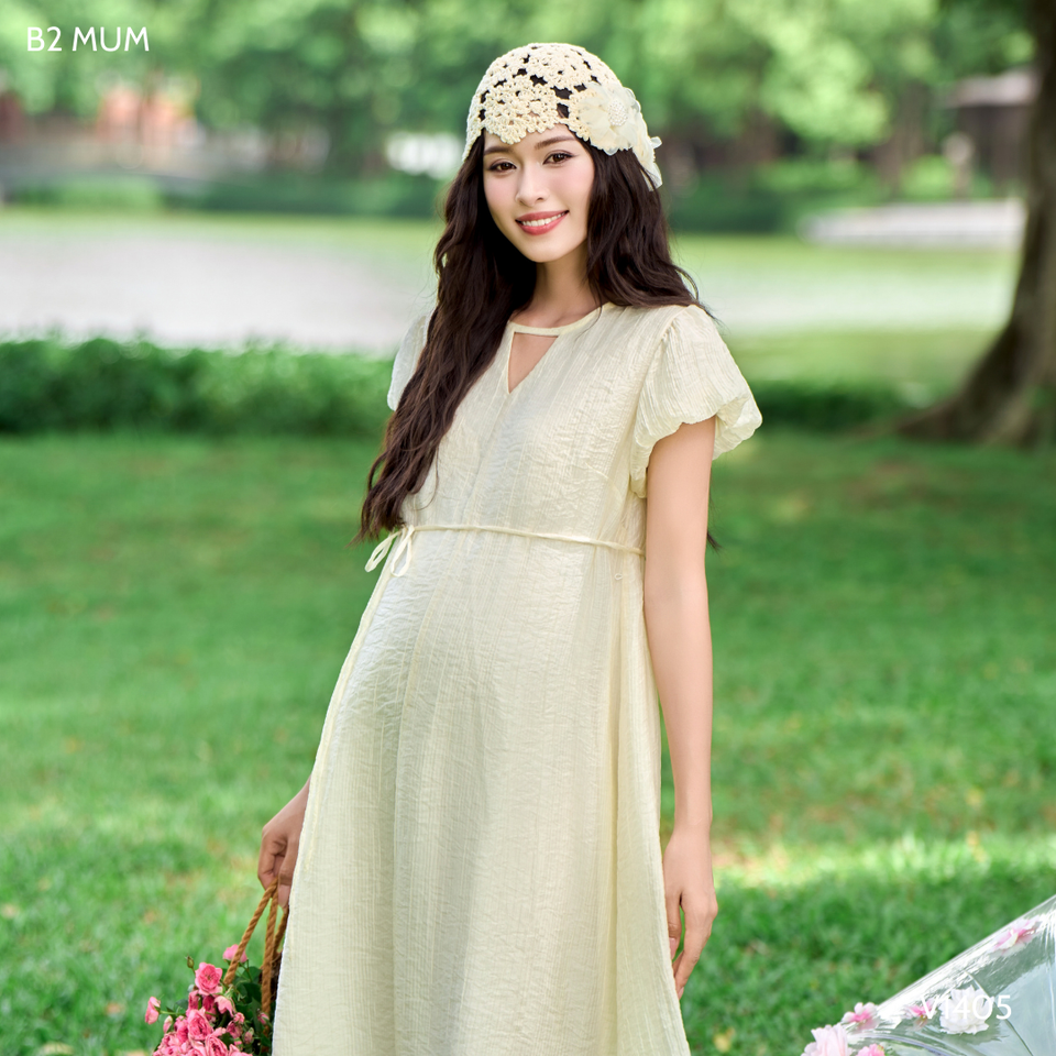 V1405 Long Pleated Silk Dress for Pregnant Women Cool Breathable Sweat-Absorbent Stretchy Elastic Waistband Maternity Wholesale