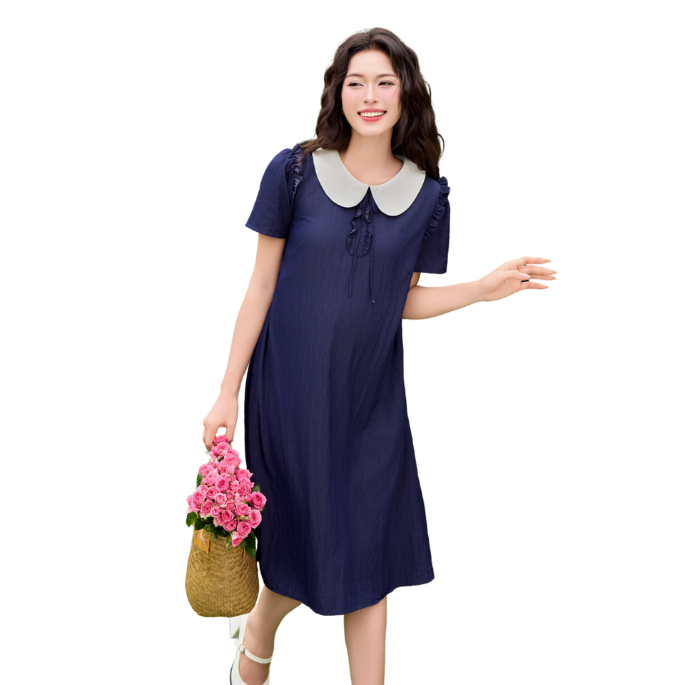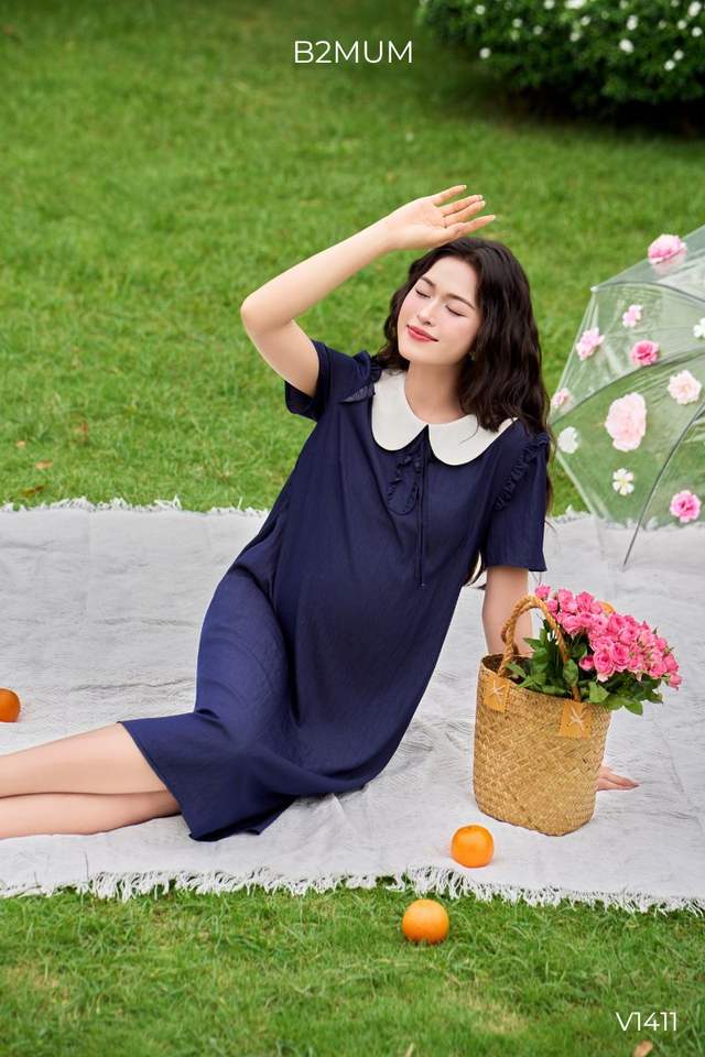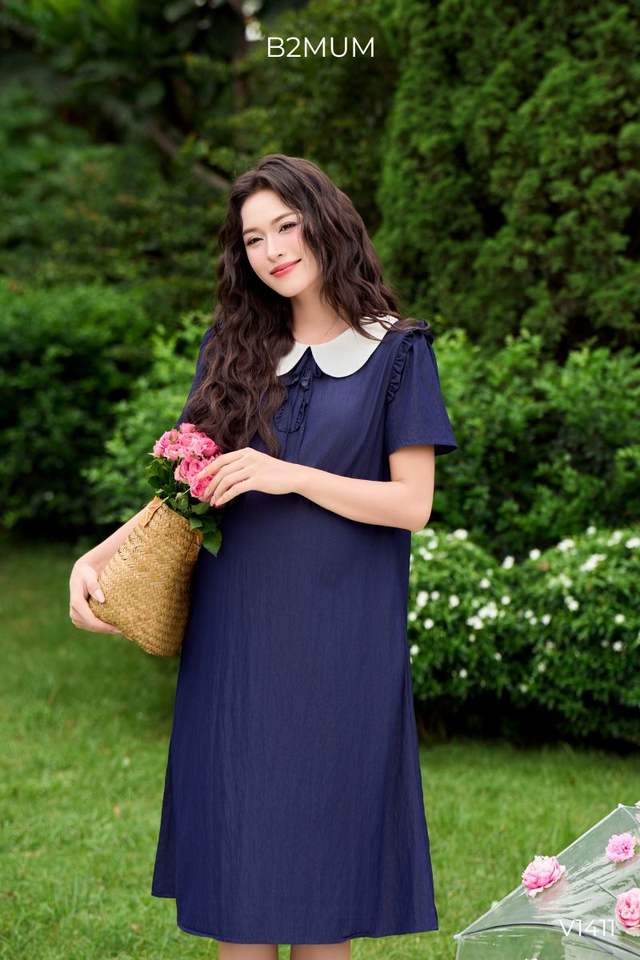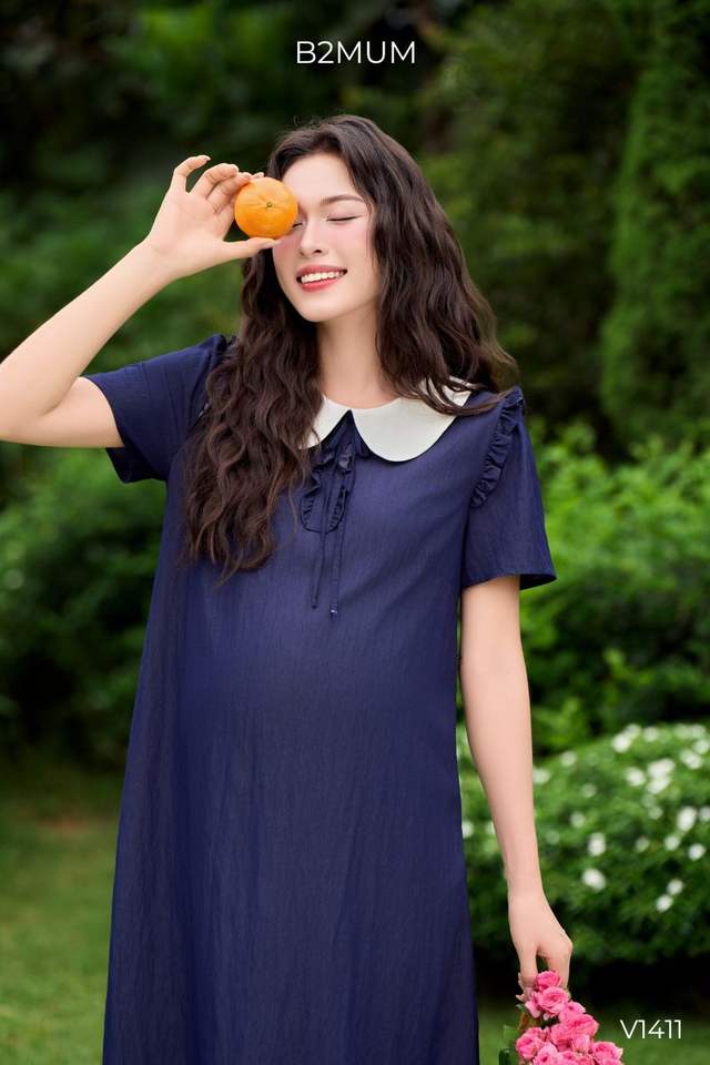 V1411 cool soft and sweat-absorbent lotus collar denim maternity dress wholesale price