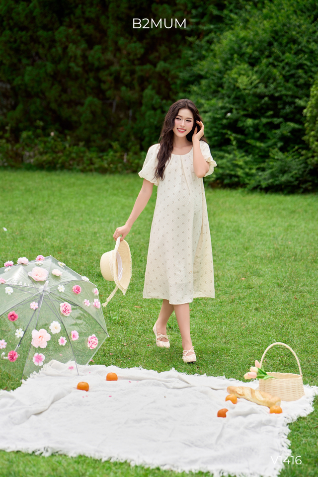 V1416 Super Cool & Soft Linen Dress Eco-Friendly Bow Pattern Maternity Clothing Wholesale Price for Pregnant Women