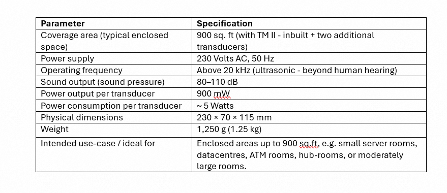 900 sq. ft, (with TM II - inbuilt + two additional transducersapplicable area