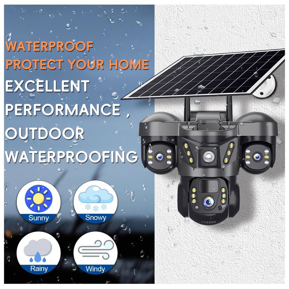 V380 6MP 4G Security IP CCTV Triple-Lens Network Camera Solar Lens 3PTZ VTS29-G CMOS Wide Angle Memory Card Night Vision