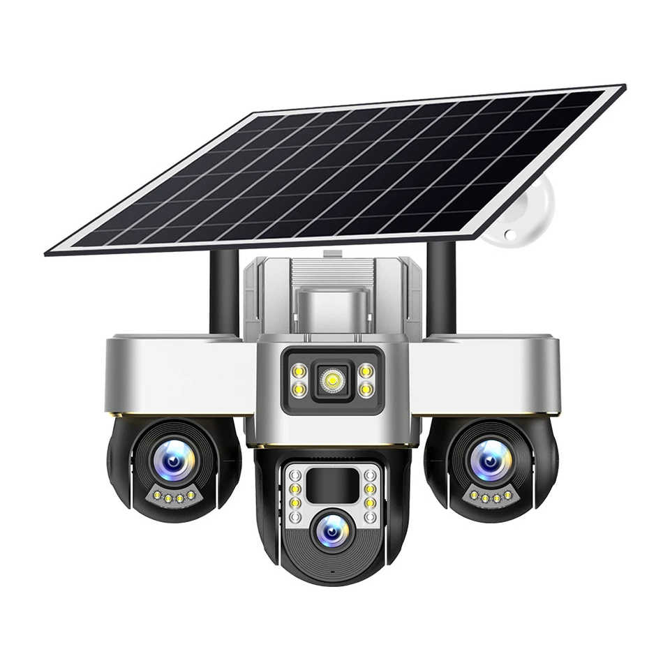 V380 Home and Outdoor HD 9MP 4K Wireless WiFi Security Camera 4G Sim Card Three-Lens Three-Screen Solar CCTV PTZ Features