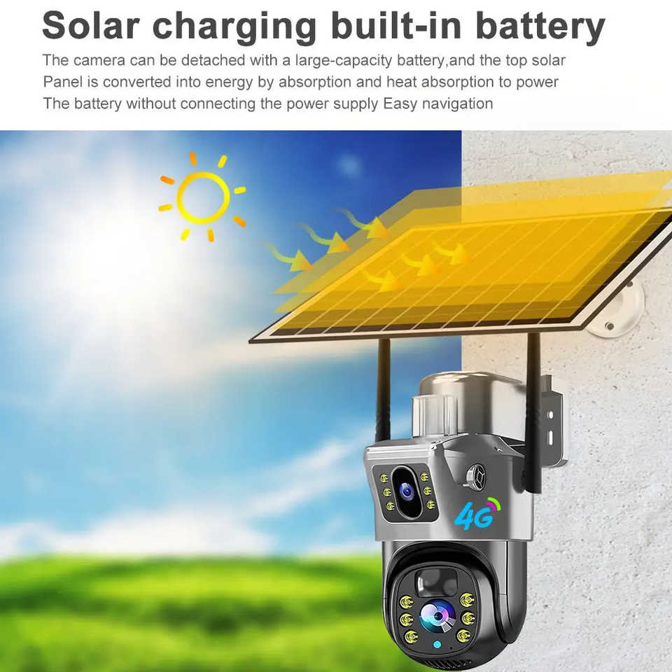 V380 Pro Solar Battery Powered CCTV Camera 8MP Dual Lens with 4G Sim Card Wireless Wifi & PTZ Video for Outdoor Surveillance
