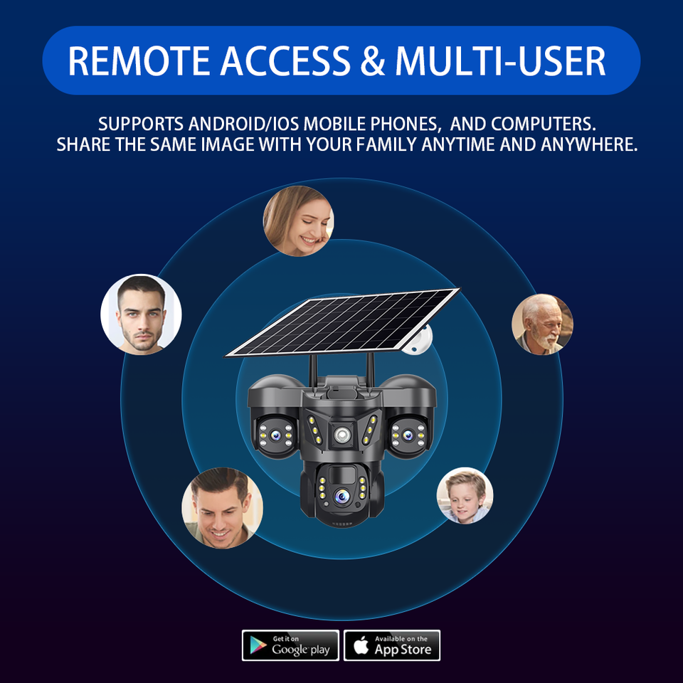 V380pro Solar 4G CCTV Camera 3 Lens 6MP GSM SIM Card LTE Asia EU US Version with 8W Solar Panel 8000mAh Battery