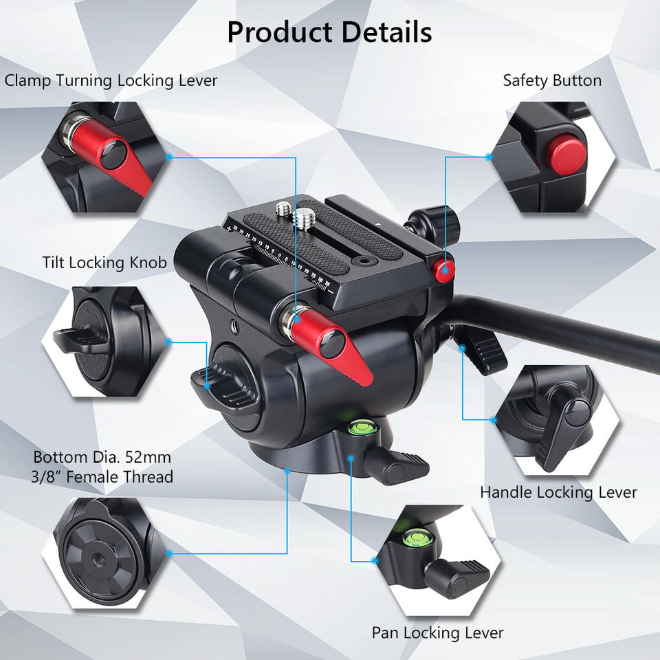 V3L Video Fluid Head Tripod Ball Head 1/4 and 3/8Inches Screw Quick Release Plate Panoramic Ball Head Tripod Monopod for Camera