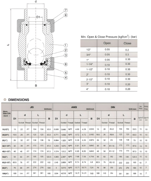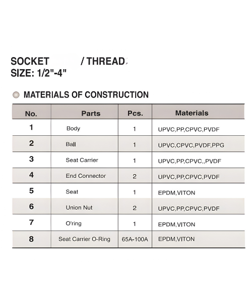 VAP0004 True Union Ball Check Valve 1/2" ~ 4" Vertical Type Plastic Bathroom/Kitchen Use Hang-On Installation