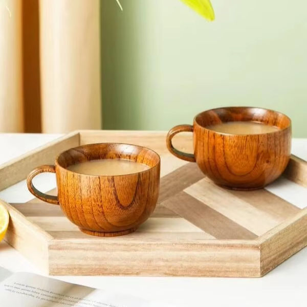 VARIOUS WOODEN Nordic Style Coco Palm Wooden Tea Set with Pot and Tray Custom logo Coconut Wood Teapot and Cup Sets