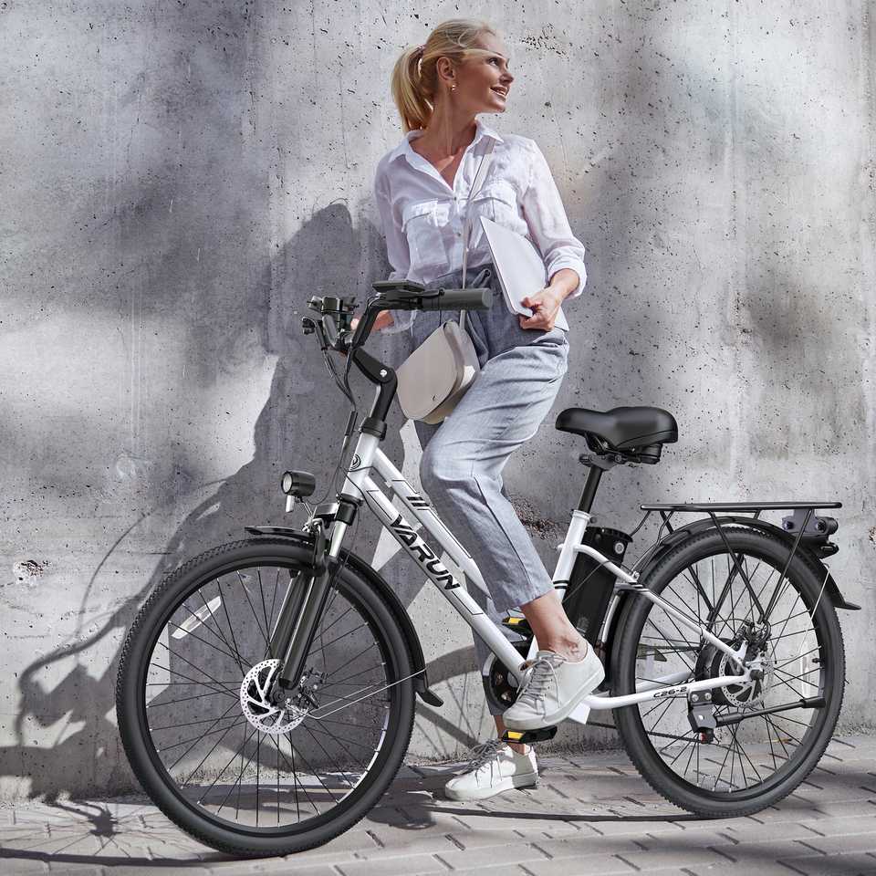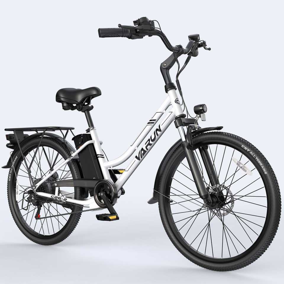 VARUN C26 White Commuter Electric Bike 250w Rear Hub Motor Integrated Lithium Battery Smart Electronic 50km Range Per 60km Max