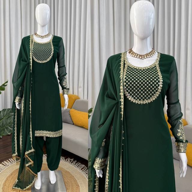 VASTRA COTTAGE Faux Georgette Patiala Suit Set With Sequins Thread Work Top Patiala Dupatta Party Wear Women Ethnic Outfit Dress