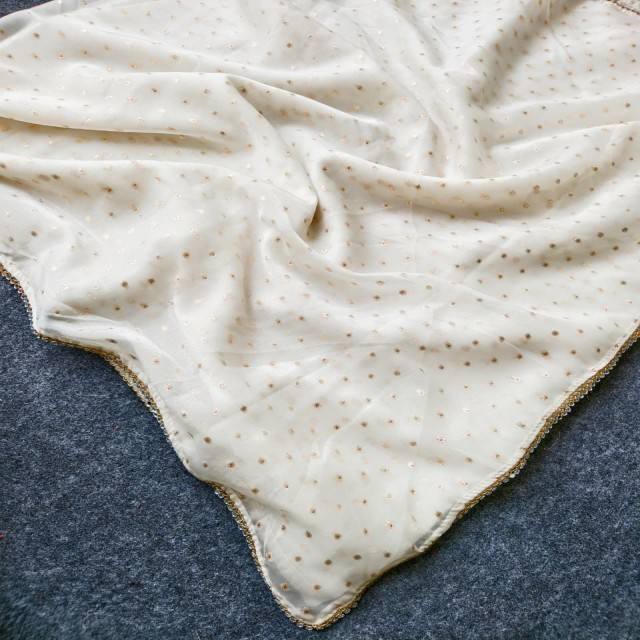 VASTRA COTTAGE Pure Chiffon Organza White Saree with Butti Work Mirror Lace Border With Contrast Woven Blouse Festive Wear