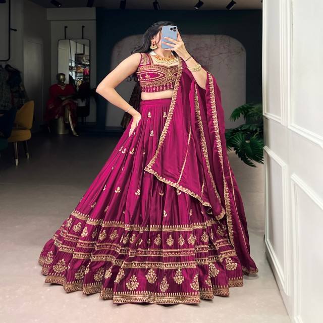 VASTRA COTTAGE Rangoli Fabric Stitched Lehenga Choli Set with Sequins Thread Embroidery Blouse and Dupatta Party Wedding Wear