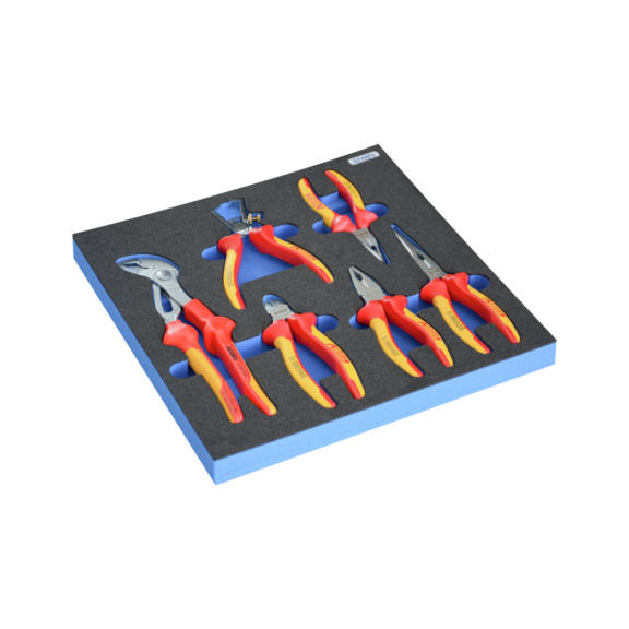 VDE pliers with ATORN foam insert 345x516x344 mm and six pieces