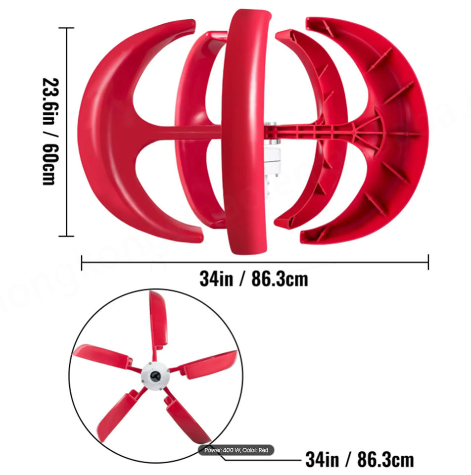 VEVOR 400w 12v Lanterns Street Lamp Wind Turbine Generator 5 Blades W/ Controller