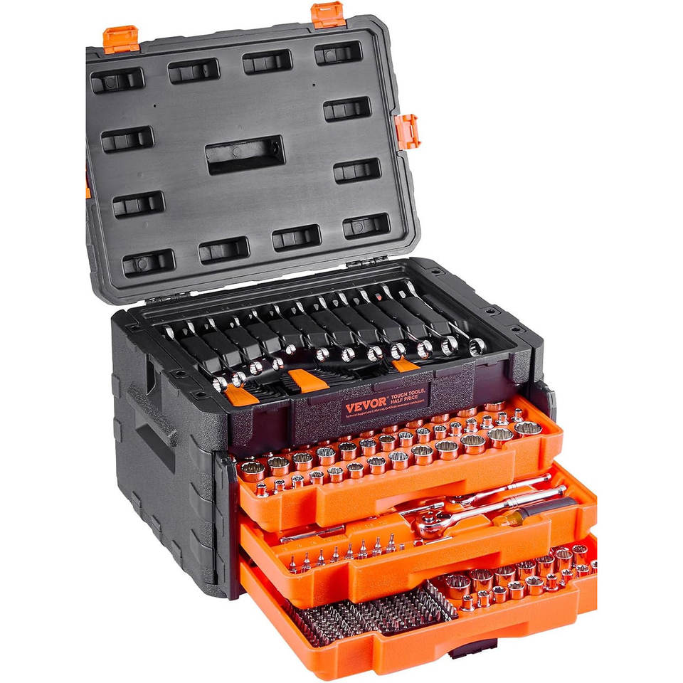 VEVOR 450-Piece Mechanics Tool and Socket Set 1/4 3/8 1/2 Inch Drive Iron Household Tool Set for Maintenance