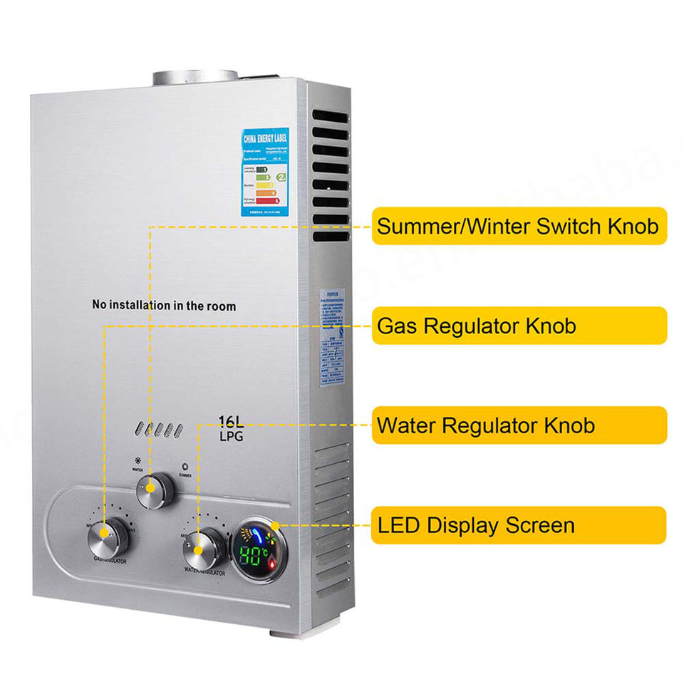 VEVOR Hot Sale 16L Intelligent Tankless Gas Water Heater Natural Gas Heating Boiler for Home Use