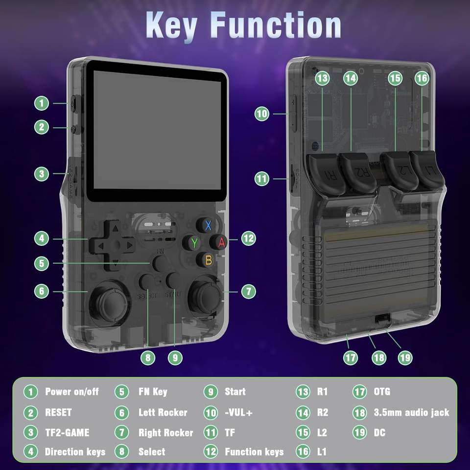 VGBUS R36S Handheld Game Console 3.5-Inch IPS Screen Quad-core Processor 3500mAh Built-in 20000+ Games Portable Case USB-C Cable
