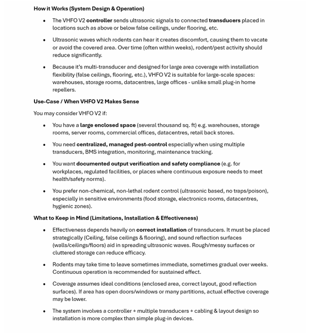 VHFO V2 Advanced Scalable Digital System-Portable Eco-Friendly Electrical Solid Accessories for Insect Control Optimized Data