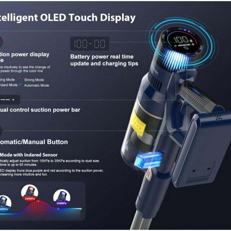 VICSONIC 480W S7 Bagless Cyclone High-Suction Intelligent Cordless BLDC Stick Vacuum Cleaner for Home & Car Use
