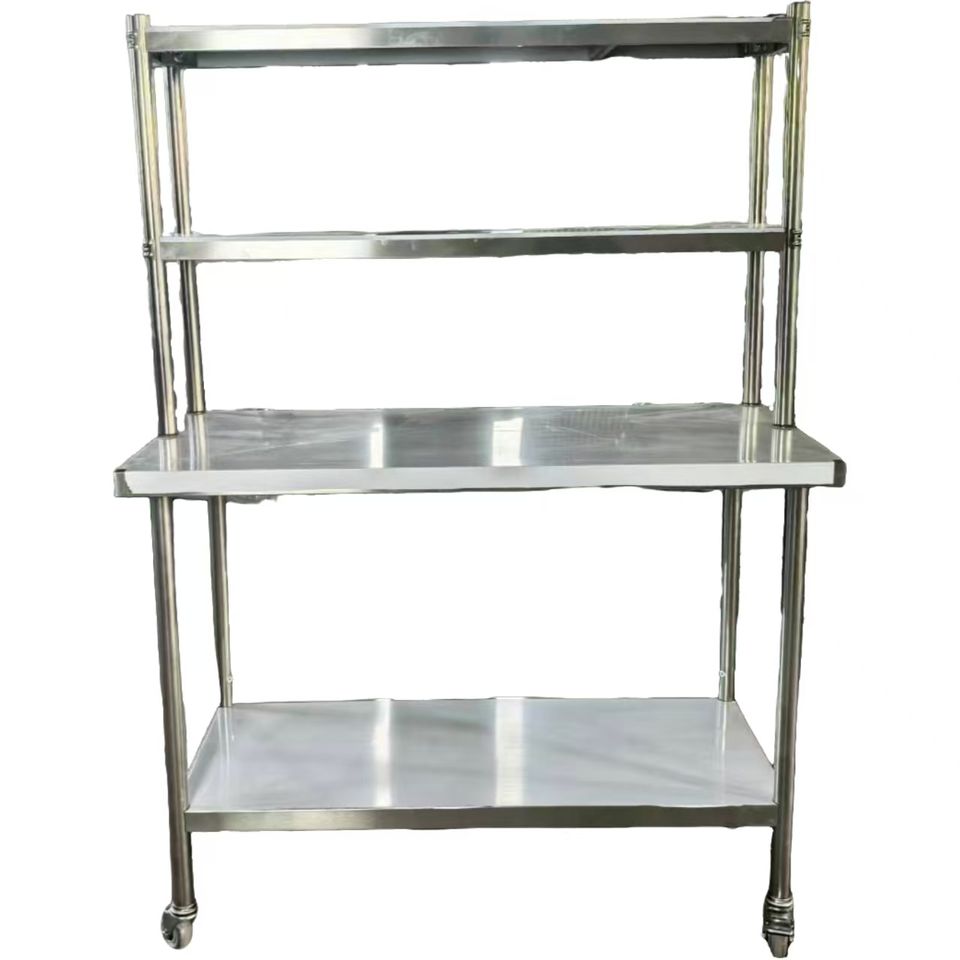 VICTORY KITCHEN Commercial Kitchen Steel Workbench 201/304 Stainless Steel Polished Finish Square Legs Casters 500kg/m Load