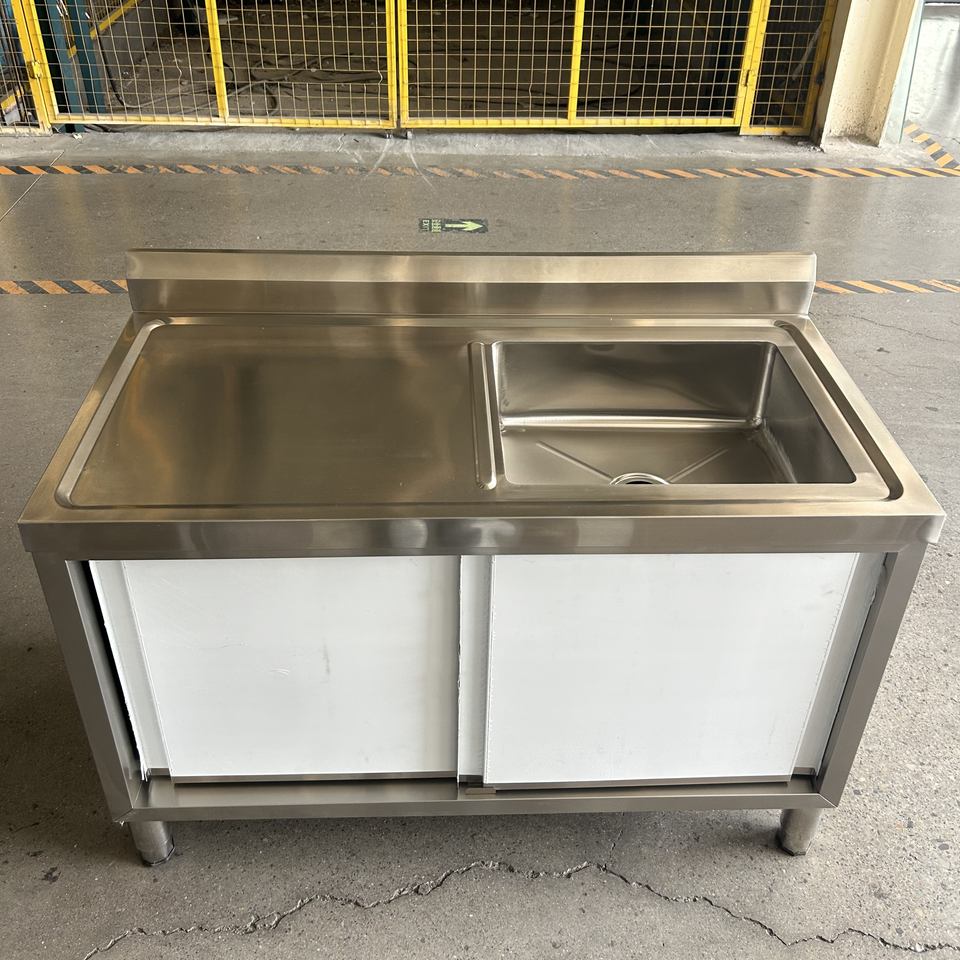 VICTORY KITCHEN Customized Double Bowl Stainless Steel 201/304 Work Table Sink with Cabinet and Sliding Door for Restaurant