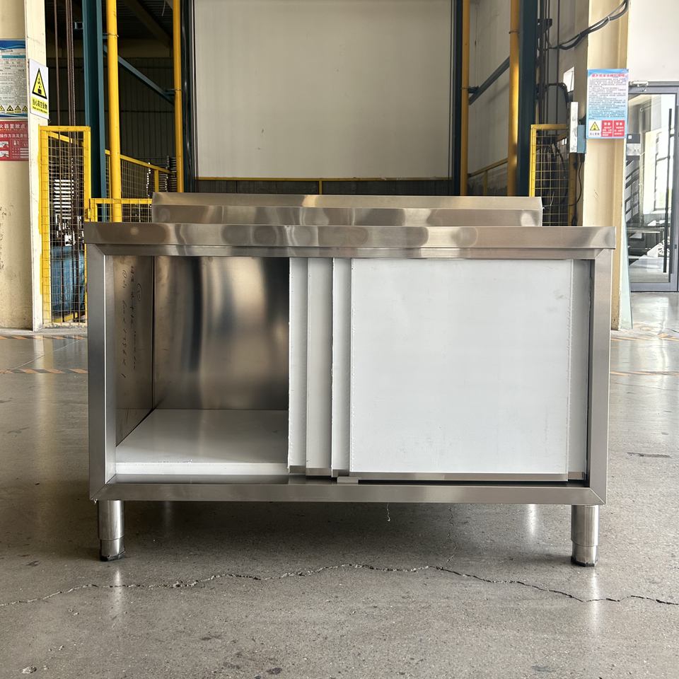 VICTORY KITCHEN Industrial Single Bowl Sink Stainless Steel Work Table Sink with Cabinet With Sliding Door for Hospital