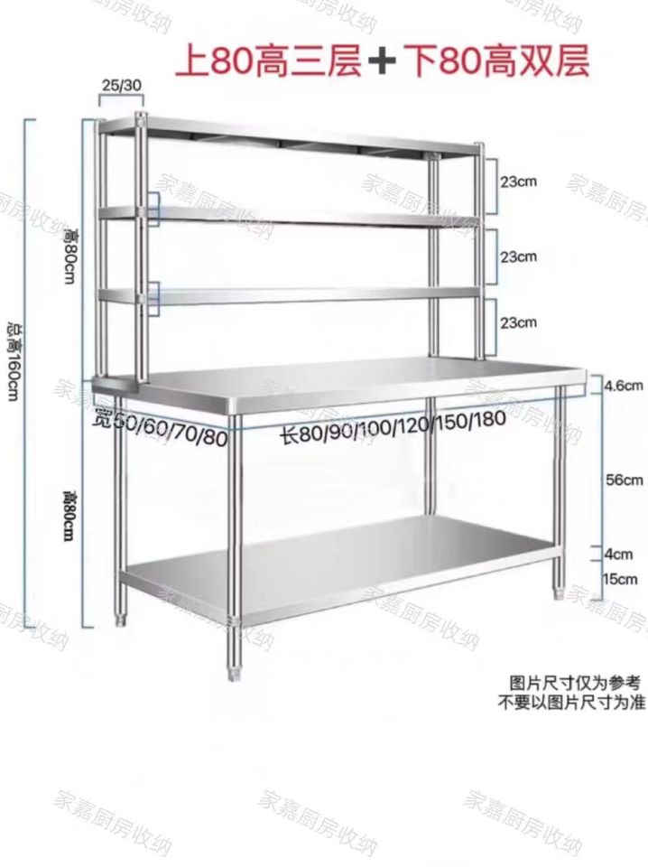 VICTORY KITCHEN Stainless Steel Bench for Industrial Kitchen WorkTable with Three Layers Table Other Hotel & Restaurant Supplies