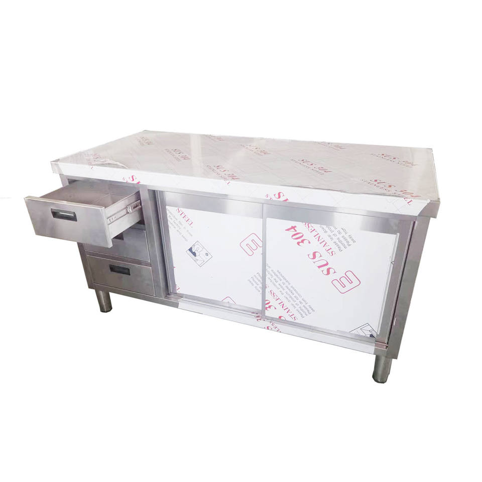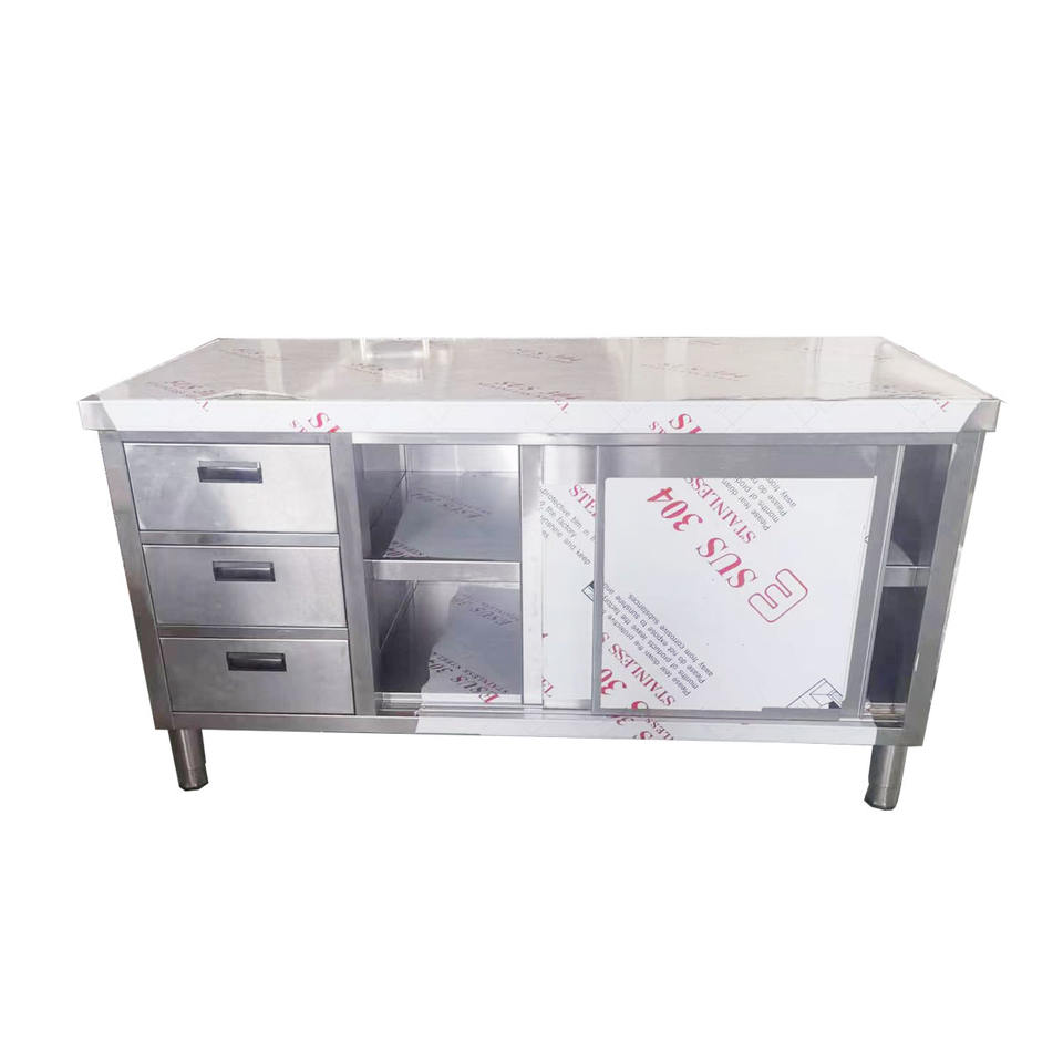 VICTORY KITCHEN Stainless Steel Sliding Door Table with Drawer SS Workbench Food Truck for Other Hotel & Restaurant Supplies