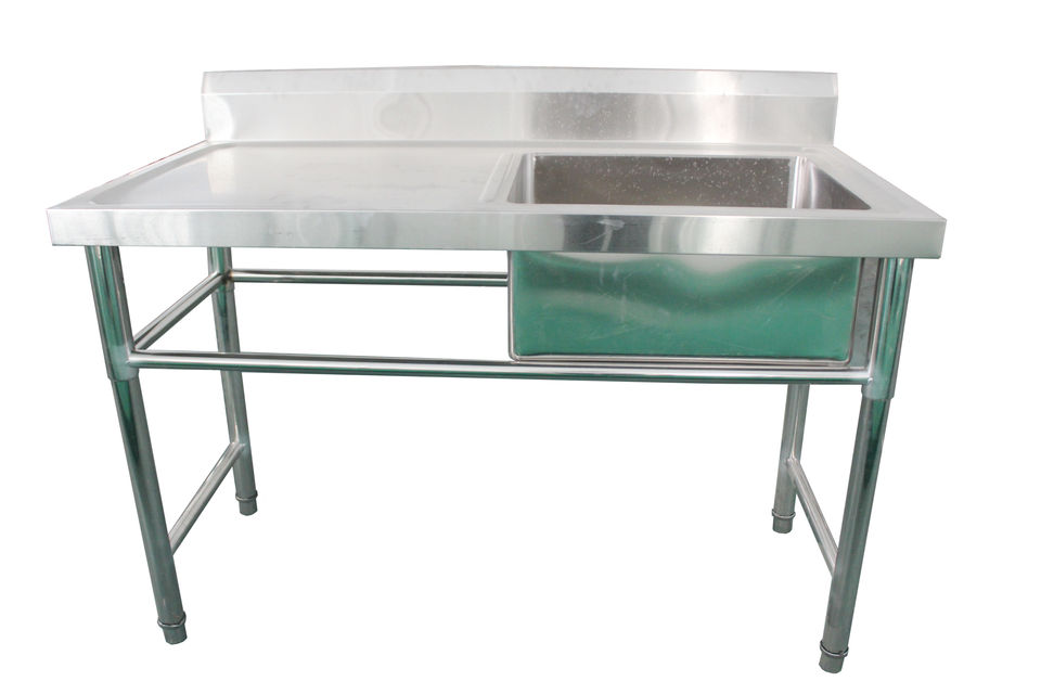 VICTORY KITCHEN Industrial Design Style Stainless Steel Single Bowl Sink with Draining Board 15% for Restaurants 1 Basin Right