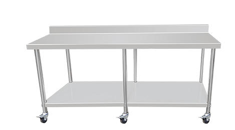 VICTORY KITCHEN Stainless Steel Working Table/bench with Backsplash Round Leg Assembly with Wheels Hotel & Restaurant Supplies