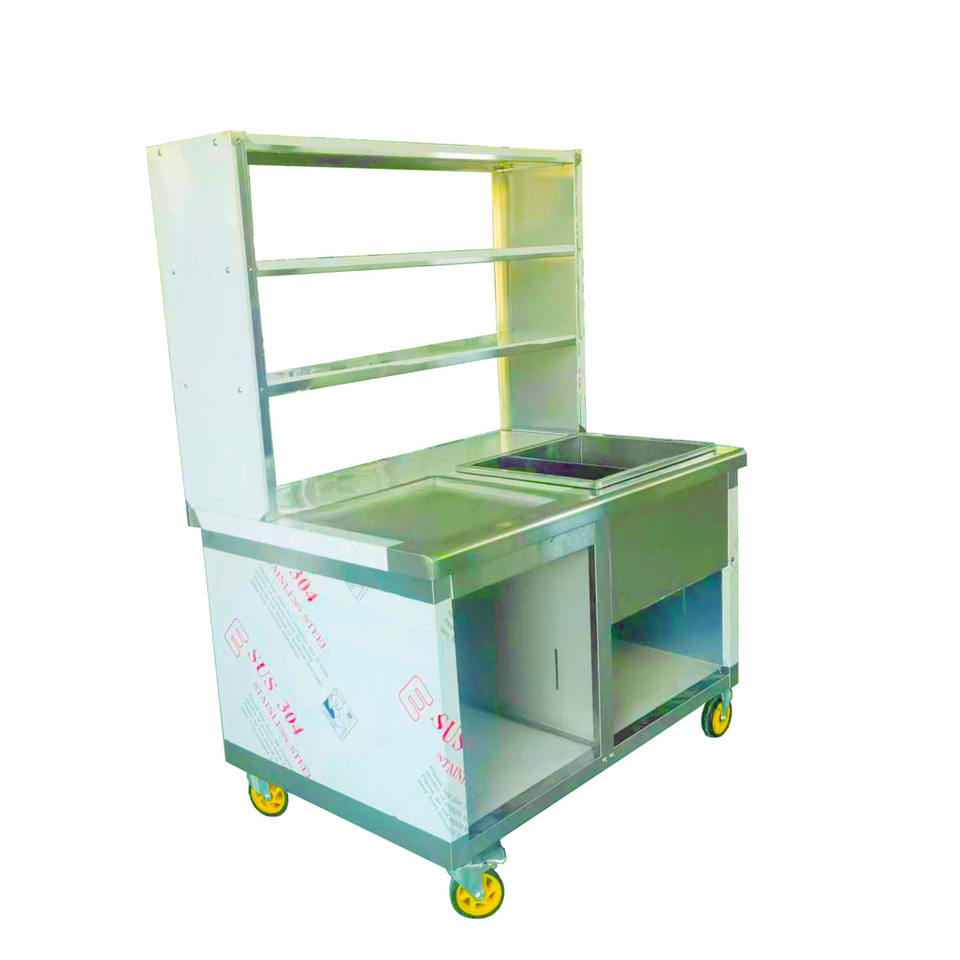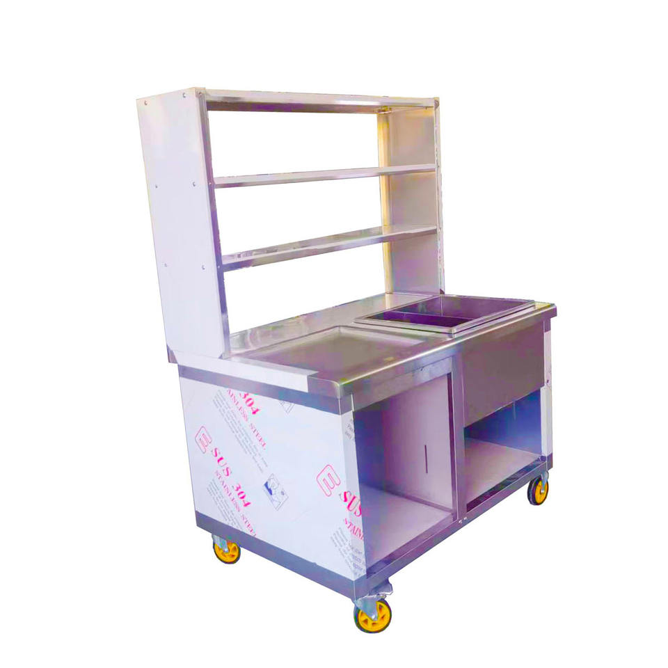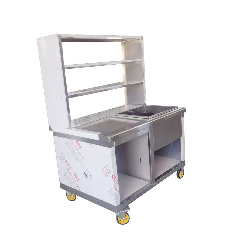 VICTORY Stainless Steel Set up a Stall Milk Tea Cart Food Truck Chicken Stall with Glass Overshelf & Spotlight for Restaurant