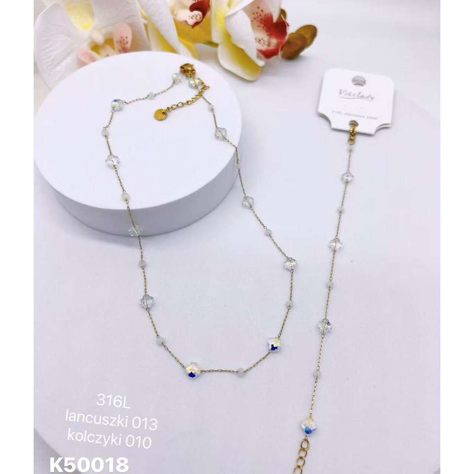 VIKILADY 316L Stainless Steel Fine Jewelry Set 585 Gold Crystal Plated Includes Polished Necklace & Bracelet Wholesale