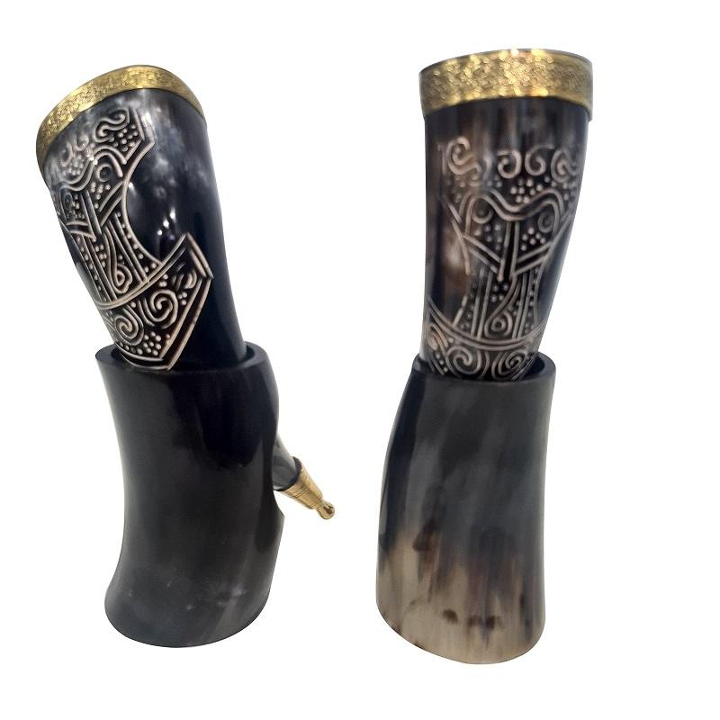 VIKING Handcrafted India Natural Buffalo Cow Ox Drinking Horn Agate Stand Polished Flower Style with Custom Logo Decoration