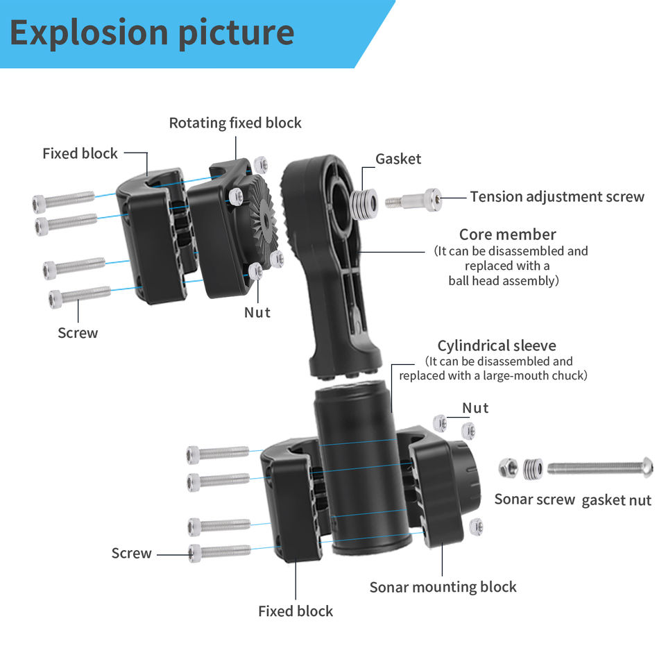 VINmounts 360 Degree Rotatable Sonar Transducer Mount Reinforced Nylon for Accurate Fishing Positioning VIN-TYQ-FD02