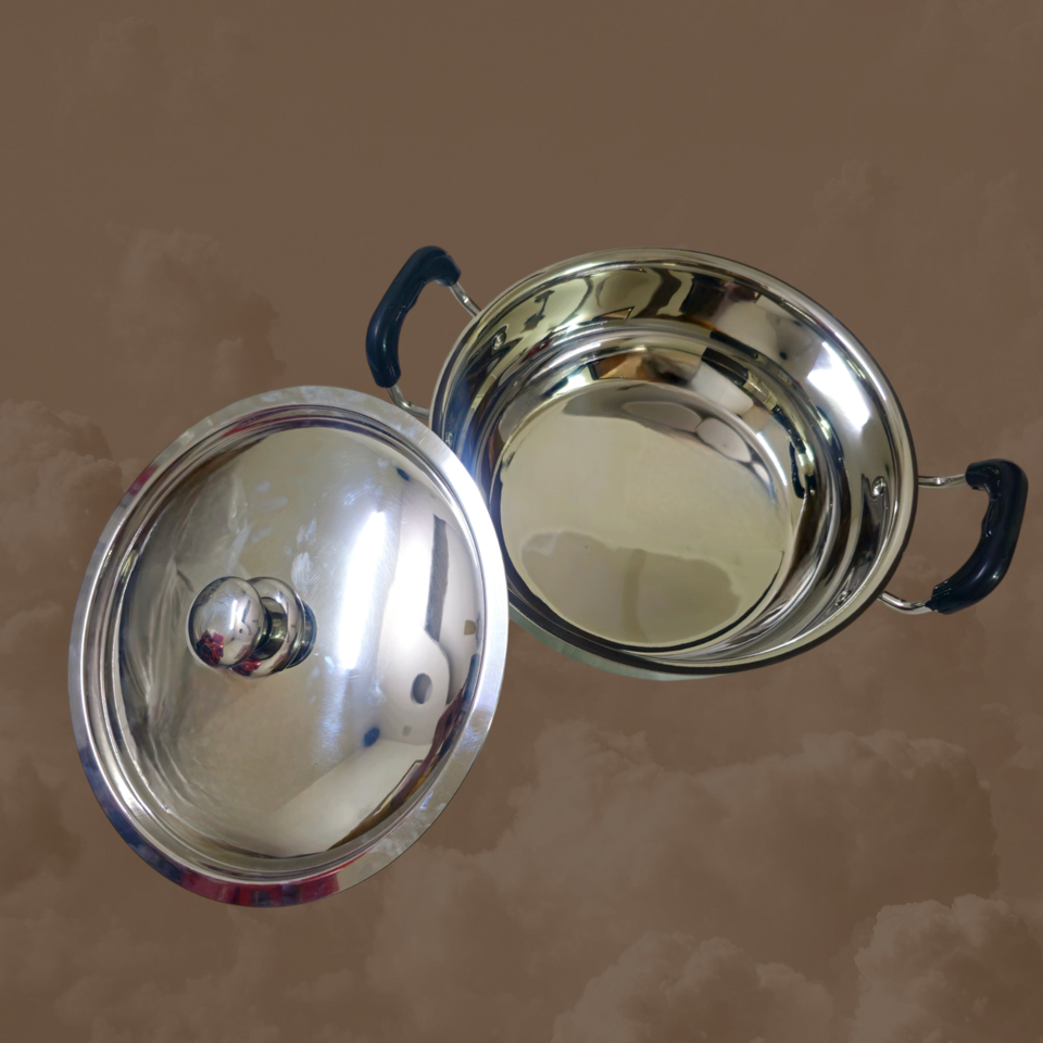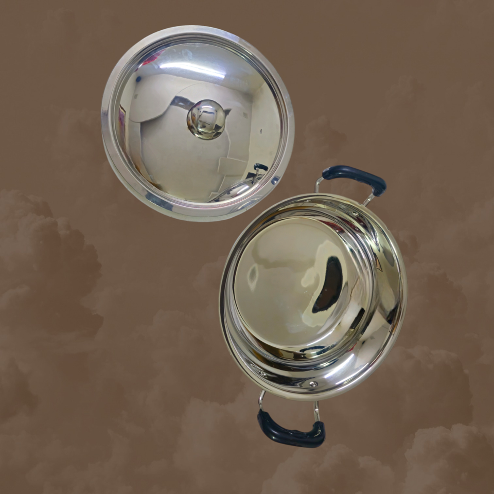 VKL 25.5 cm Luxury Metal Cooking Pot with Stainless Steel Sandwich Bottom and Lid Induction Friendly Soup Stock Cookware