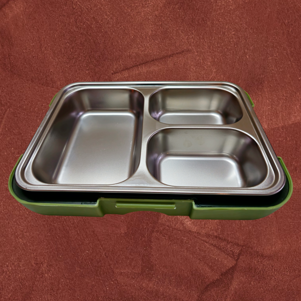 VKL Airtight Heat Resistant Plastic and Stainless Steel Food Storage Bento Lunch Box Compartment Container With Spoon