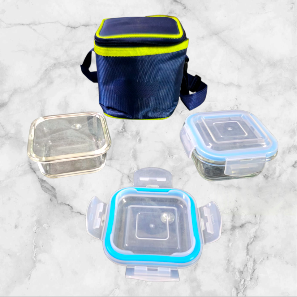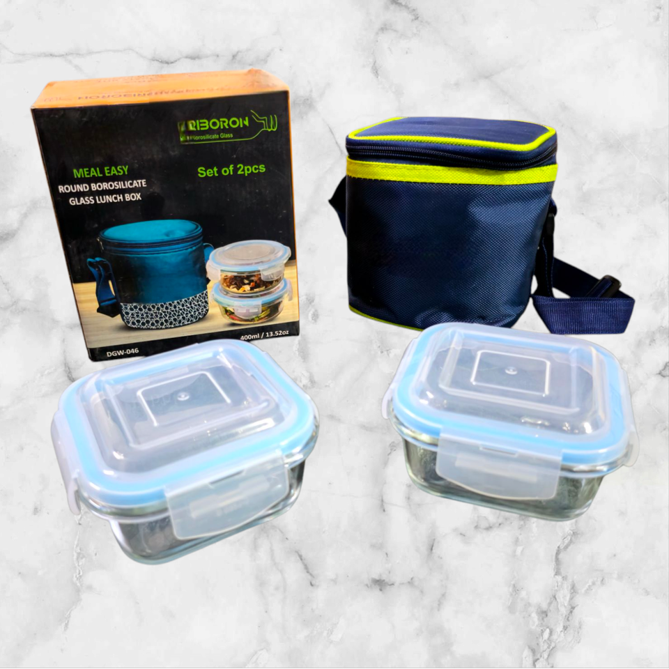 VKL Best Selling 2pcs Borosilicate Glass Food Storage Air Tight Lunch Box Heatable Microwavable Wholesale Bag Included