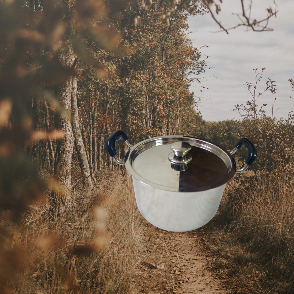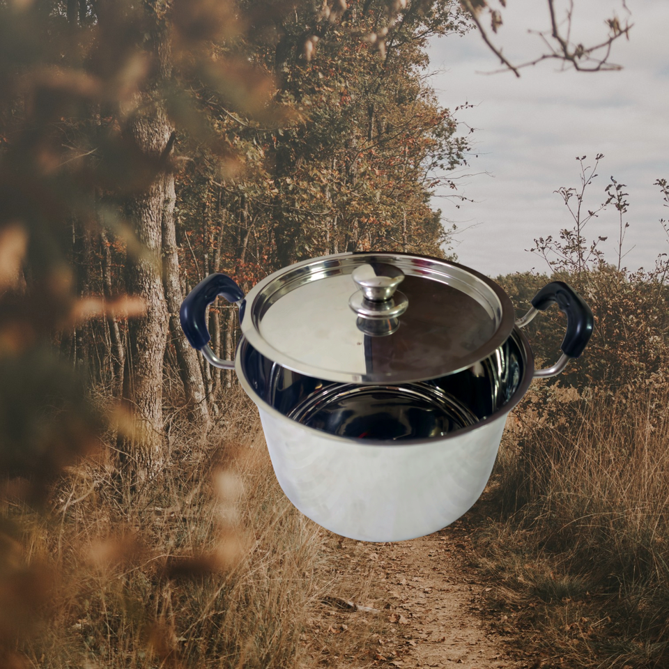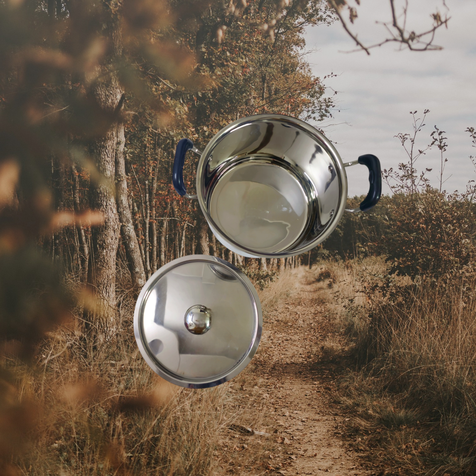 VKL Sandwich Bottom Stainless Steel Metal Cooking Pot and Pan Cookware Kitchen Stew Pan Pot 22.5 cm Induction Friendly with Lid