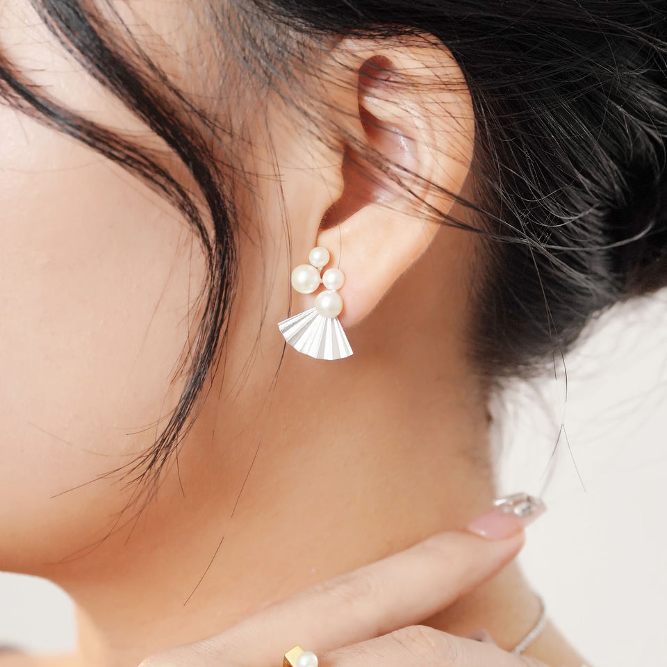 VM JEWELRY Artisan Fan Fold Pearl 18K Gold/925 Silver Earrings Minimalist Design Work Evening Unisex Jewelry