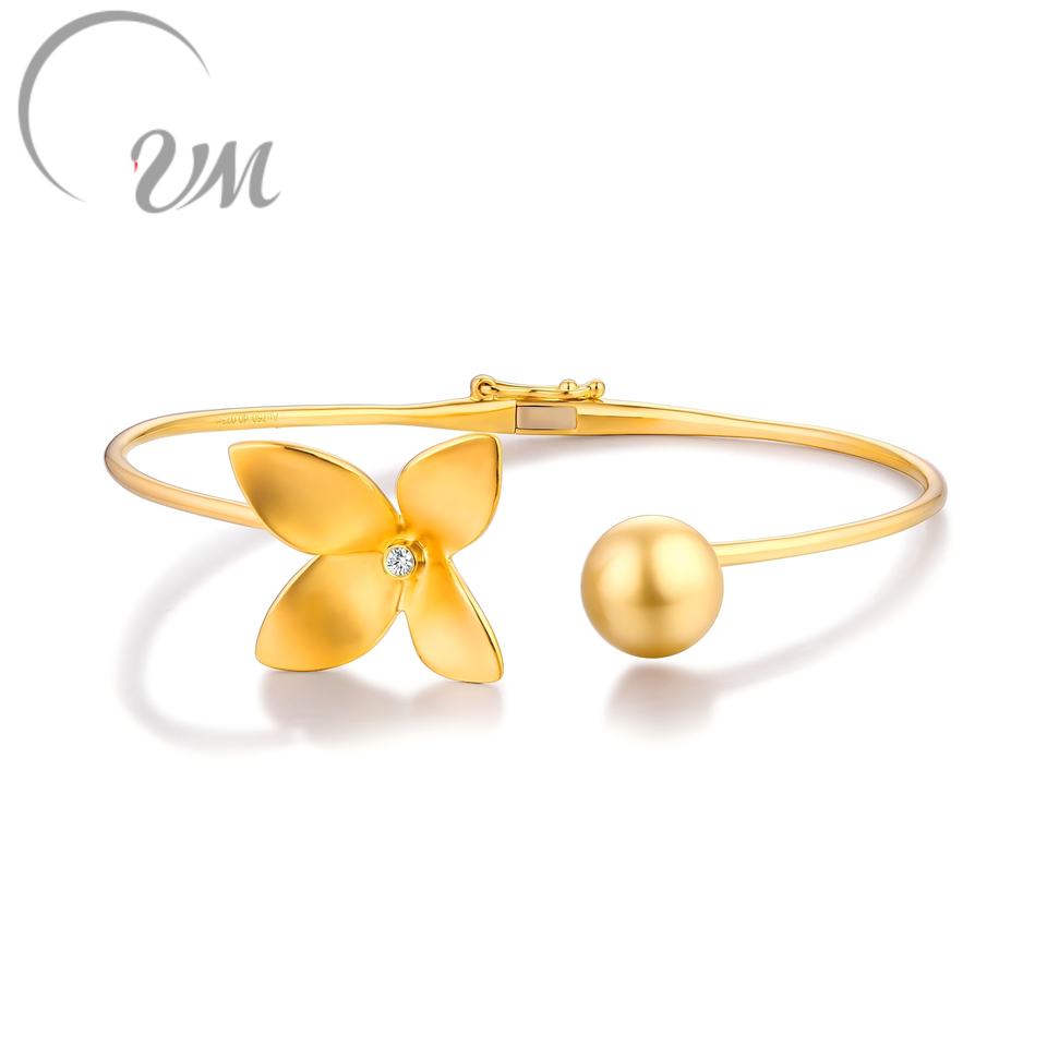 VM JEWELRY Original 18K Gold/925 Silver Seawater Pearl 9.0mm Minimalist Luxury Fine Bangle Bracelet NGTC Certified Unisex for