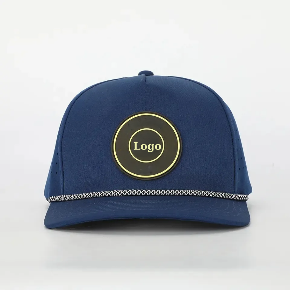 VN Factory Customized 5-Panel Rubber PVC Golf Hat Laser Cut Holes Logo Patch Rope Plastic Back Closure Waterproof Baseball Cap